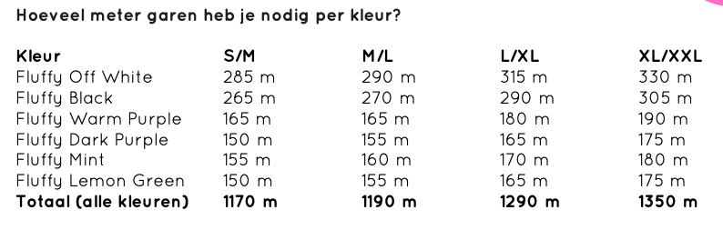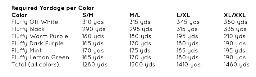 How much yarn do you need based on size S/M, M/L (L/XL & XL/XXL):