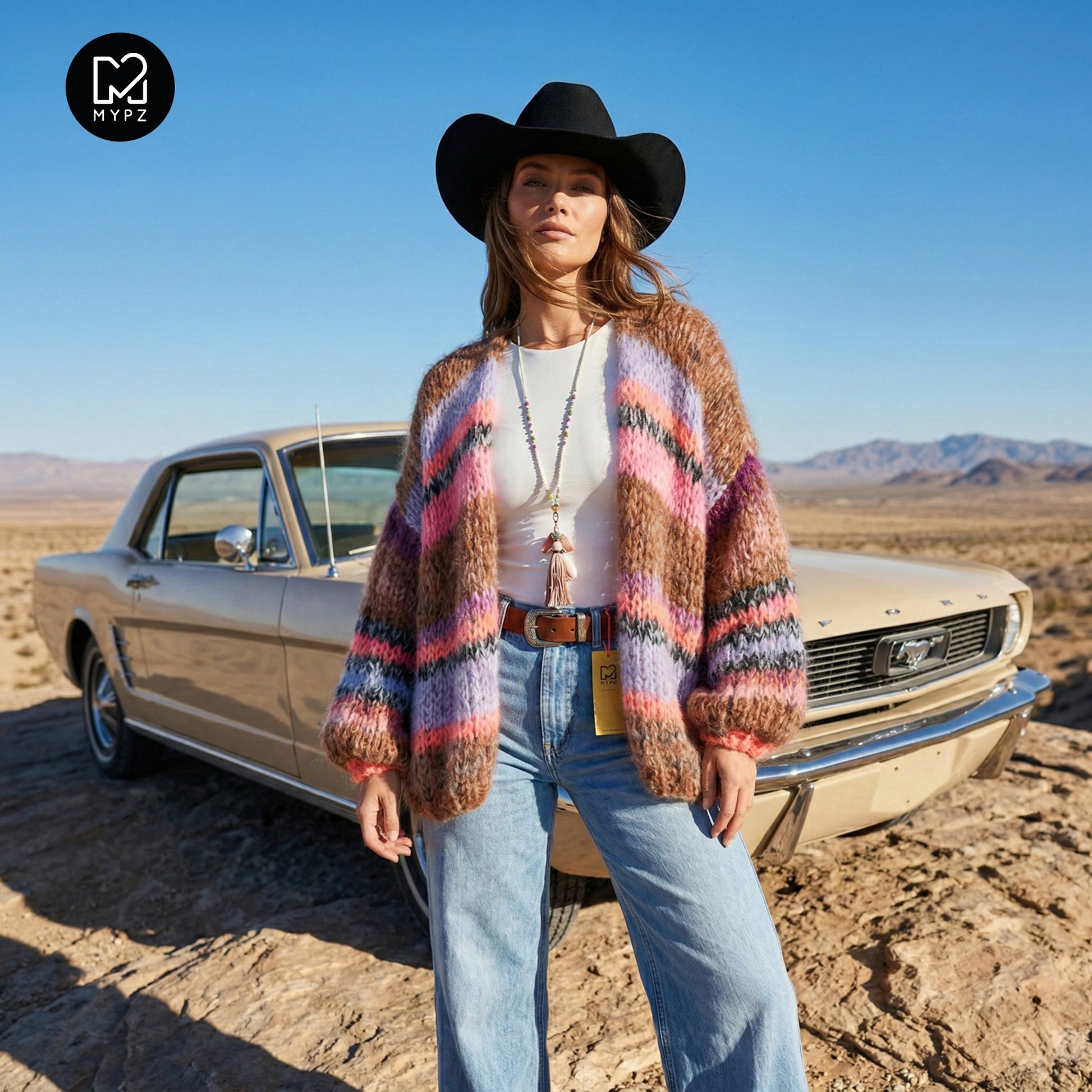 HANDMADE WITH LOVE BY MYPZ | This is a handmade knit made by MYPZ in The Netherlands. Each cardigan or pullover is a unique piece and we take a lot of time and care to create these beautiful products. This cardigan is made of a high quality MYPZ Chunky Kidmohair DK yarn.