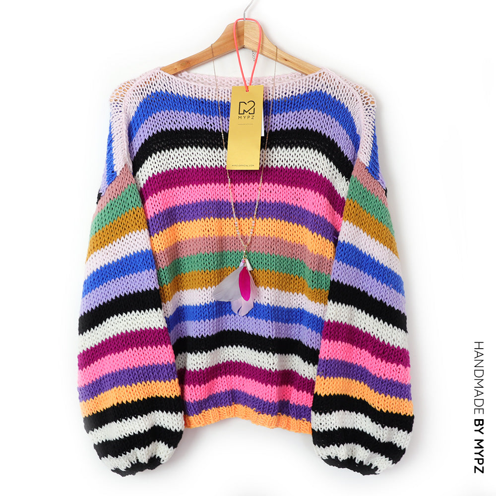 This is a handmade knit made by MYPZ in The Netherlands. Each cardigan or sweater is a unique piece and we take a lot of time and care to create these beautiful products. This beautiful sweater is made of a high quality Super Soft Merino Wool.